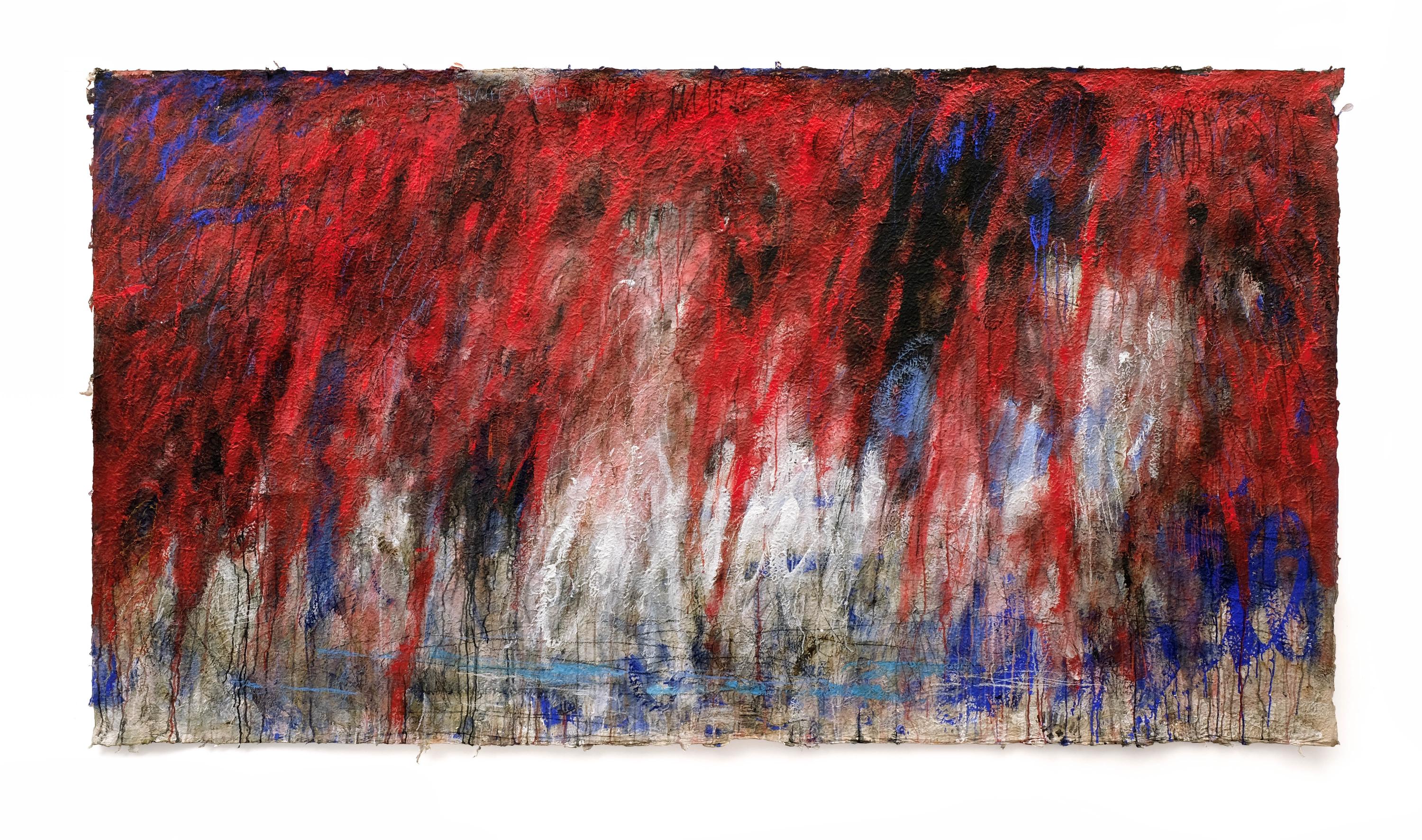 Farbstift, Pigment, Gesso, Acryl auf Lokta-Papier