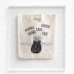 Acrylic on found plastic bag, plexiglass-frame